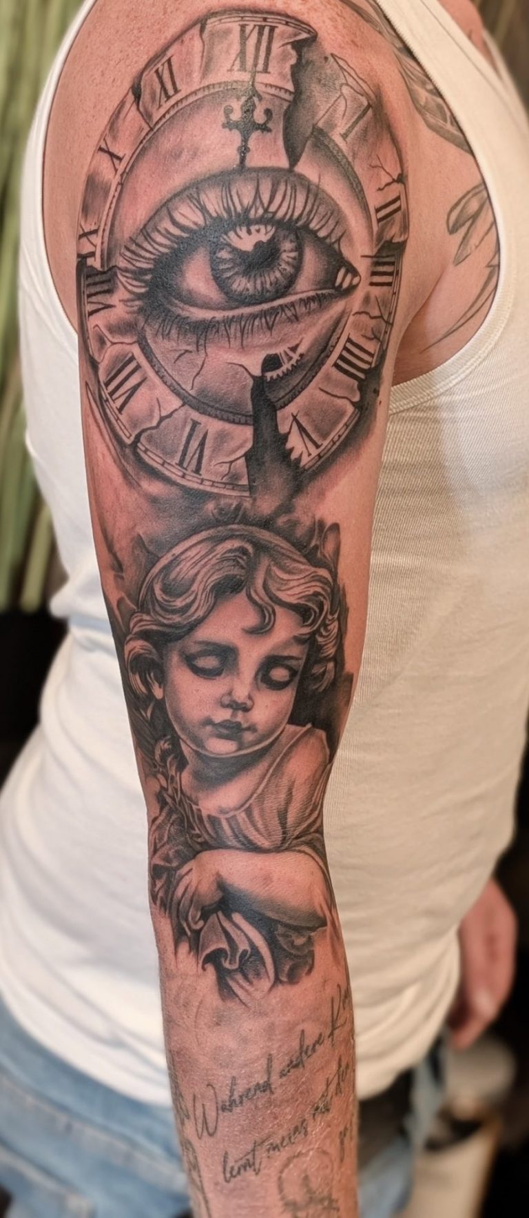 In unserem Tattoostudio stehen Qualität, Kreativität und das Wohlbefinden unserer Kunden im Mittelpunkt. Wir bieten eine breite Palette an Leistungen, darunter Cover-Ups, um alten Tattoos neues Leben einzuhauchen. Für realistische Tätowierungen setzen wir auf Detailverliebtheit, um lebensechte Kunstwerke zu schaffen, die Geschichten erzählen. Blackwork, mit seinen klaren Linien und kraftvollen Kontrasten, gehört ebenfalls zu unseren Spezialitäten. Darüber hinaus gestalten wir individuelle Designs, die genau auf die Wünsche unserer Kunden abgestimmt sind, und setzen auch größere Projekte mit Leidenschaft und Präzision um.